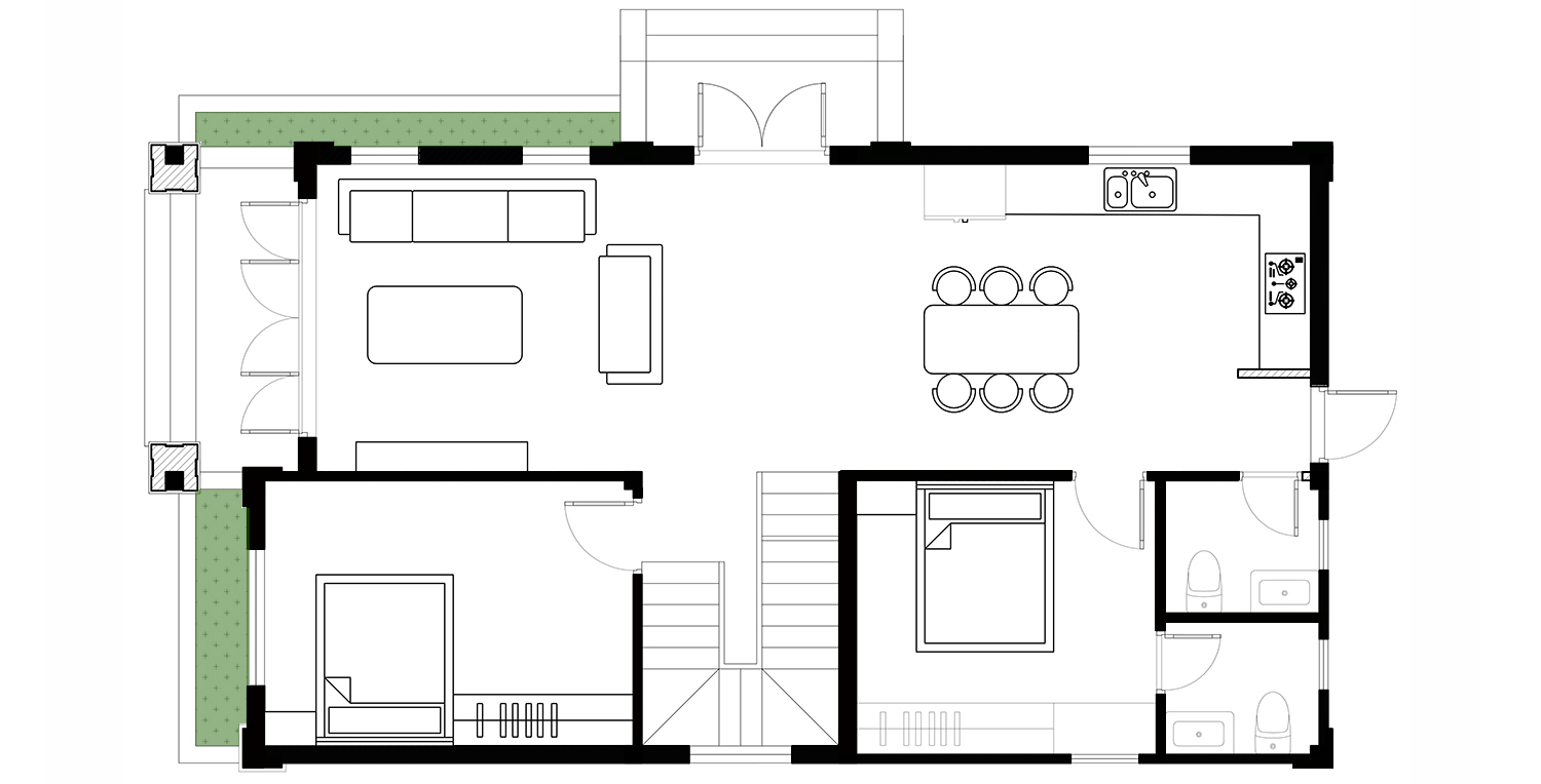 2 phòng ngủ, phù hợp cho người lớn tuổi hoặc khách đến chơi ở lại qua đêm.