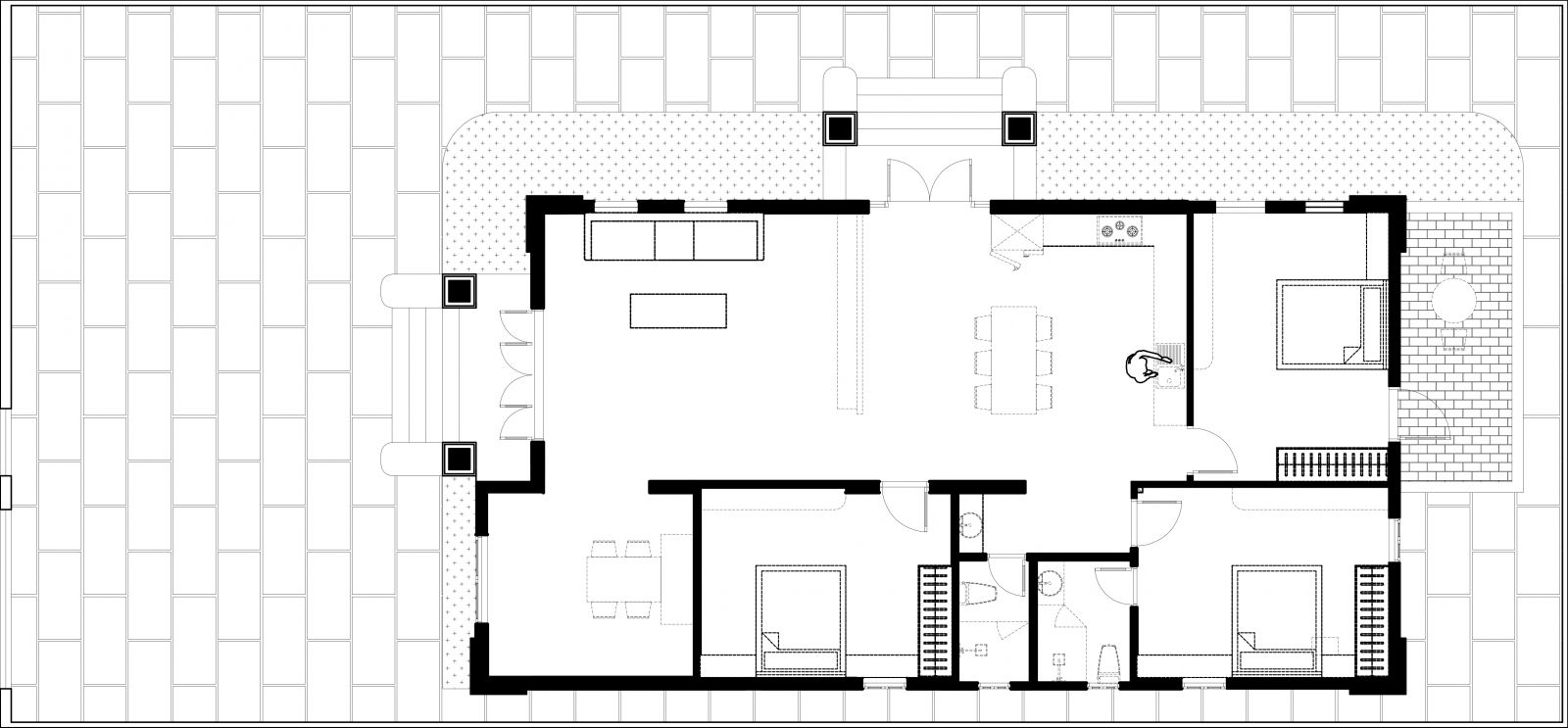 Ngôi nhà được bố trí vô cùng hợp lý, đảm bảo sự riêng tư cho từng thành viên nhưng vẫn giữ được sự kết nối chung: