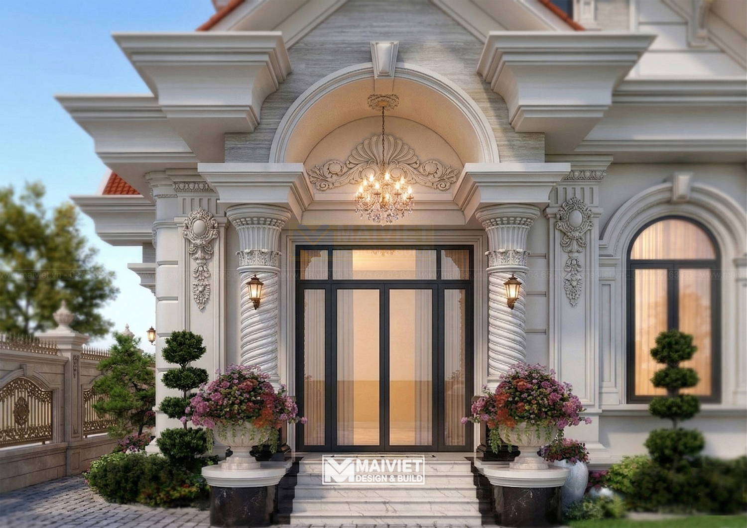 Cửa vòm đặc trưng: Các ô cửa sổ kính lớn hình vòm không chỉ là điểm nhấn kiến trúc đặc trưng của phong cách cổ điển châu Âu mà còn giúp đón ánh sáng tự nhiên tối đa vào không gian nội thất.