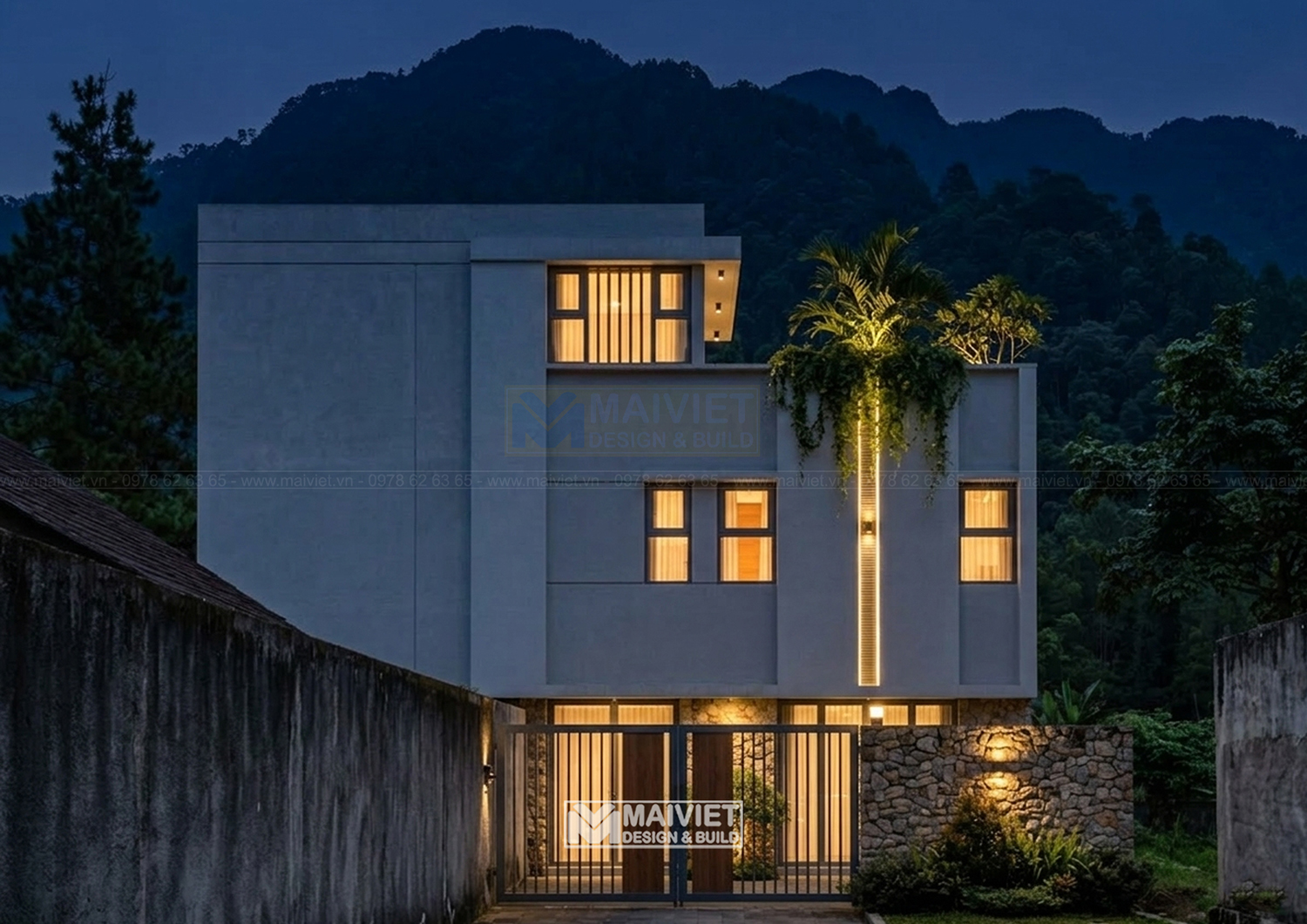 Hình ảnh kiến trúc bên ngoài với sáng sáng ban đêm
