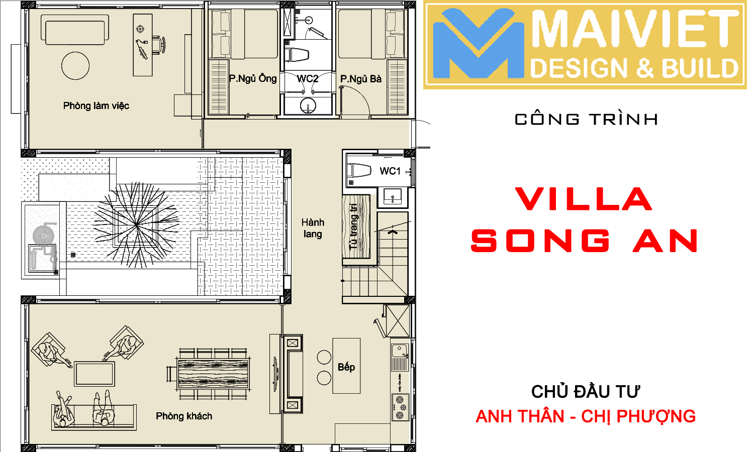 Không gian làm việc: Sự cân bằng giữa Tập trung và Thư tháiPhòng làm việc (Hình 1) được thiết kế như một không gian đa năng. Đó vừa là một văn phòng tại gia chuyên nghiệp với hệ tủ kệ lớn, vừa là một phòng khách thứ hai để tiếp đón những đối tác thân mật.